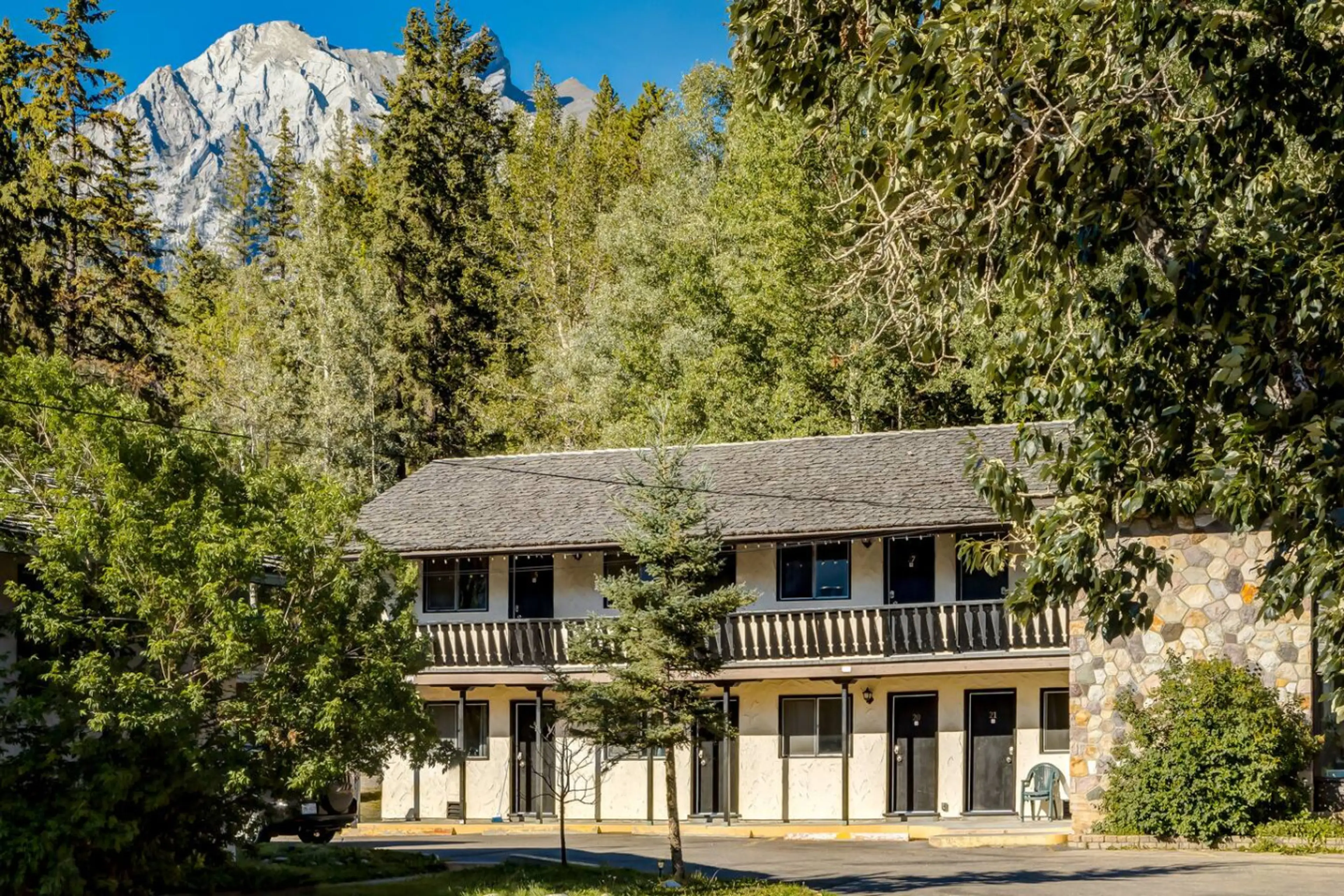 Positive: Stayed in room 20 on the first floor. Clean linens and sleeping area, good views, 2 min drive to Canmore. Walk-out right to car park.